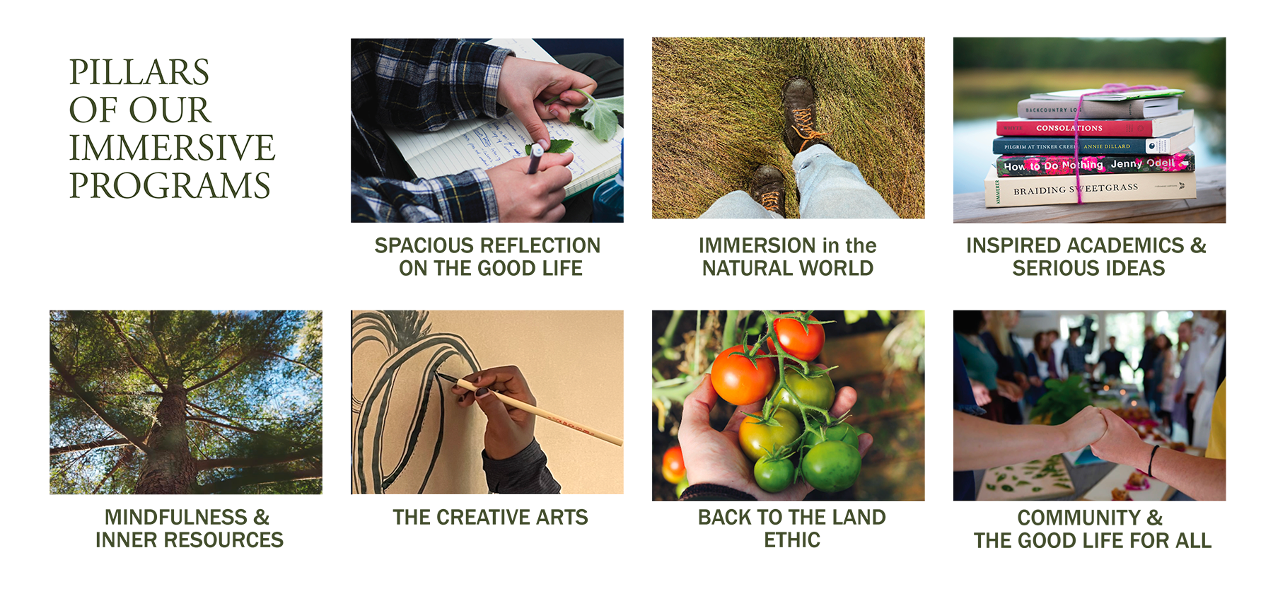 Join us for an afternoon that entails all the pillars of our regular programs, but designed for an older crowd: spacious reflection on the good life in “the third act”, immersion in the natural world, mindfulness practices, the creative arts and a back to the land ethic.